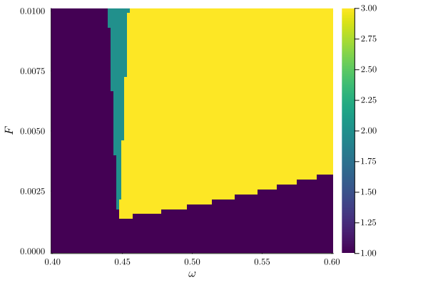 varied = (ω => range(0.4, 0.6, 100), F => range(1e-6, 0.01, 50))