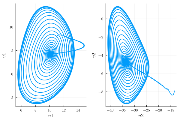 p1 = plot(time_evo, ["u1", "v1"], harmonic_eq)